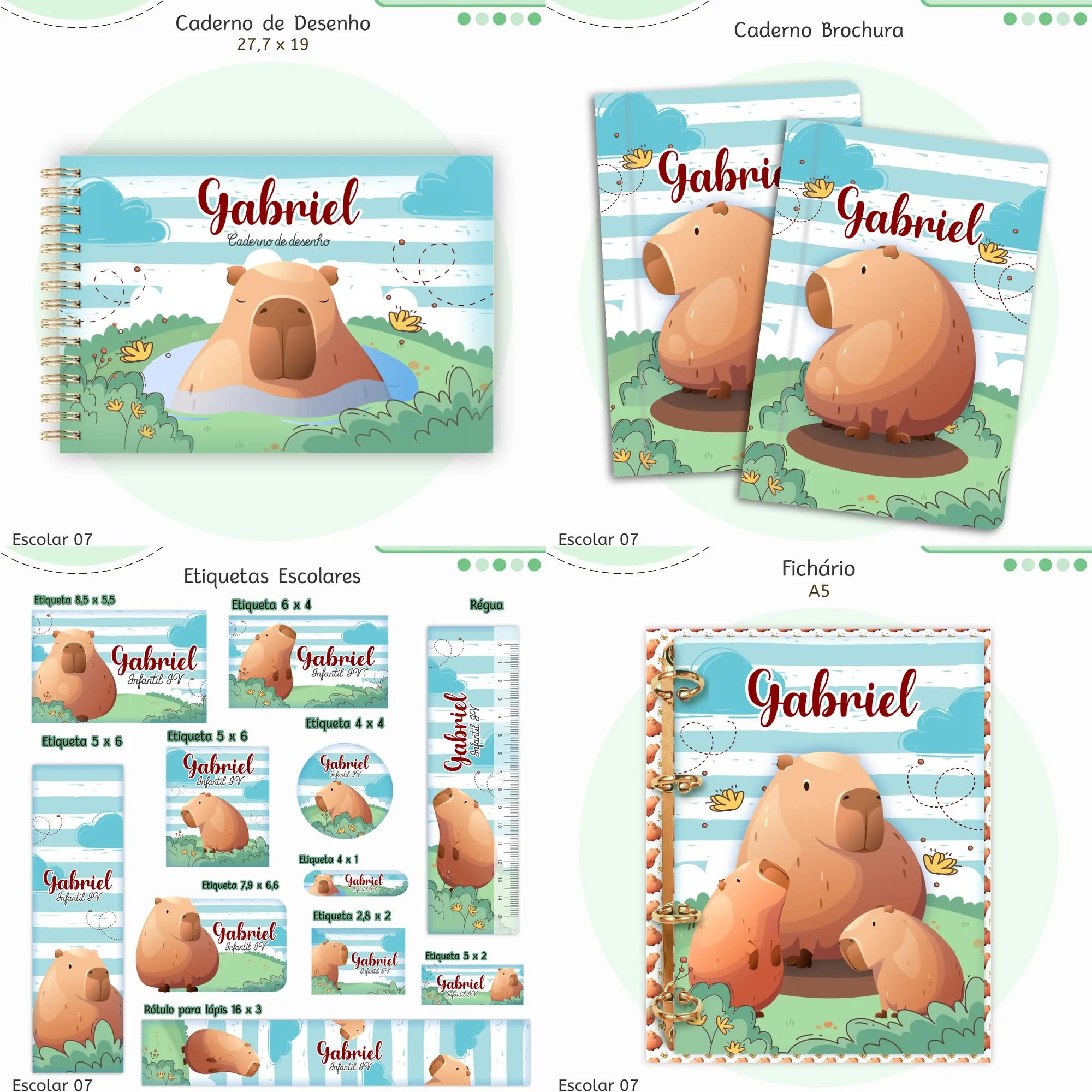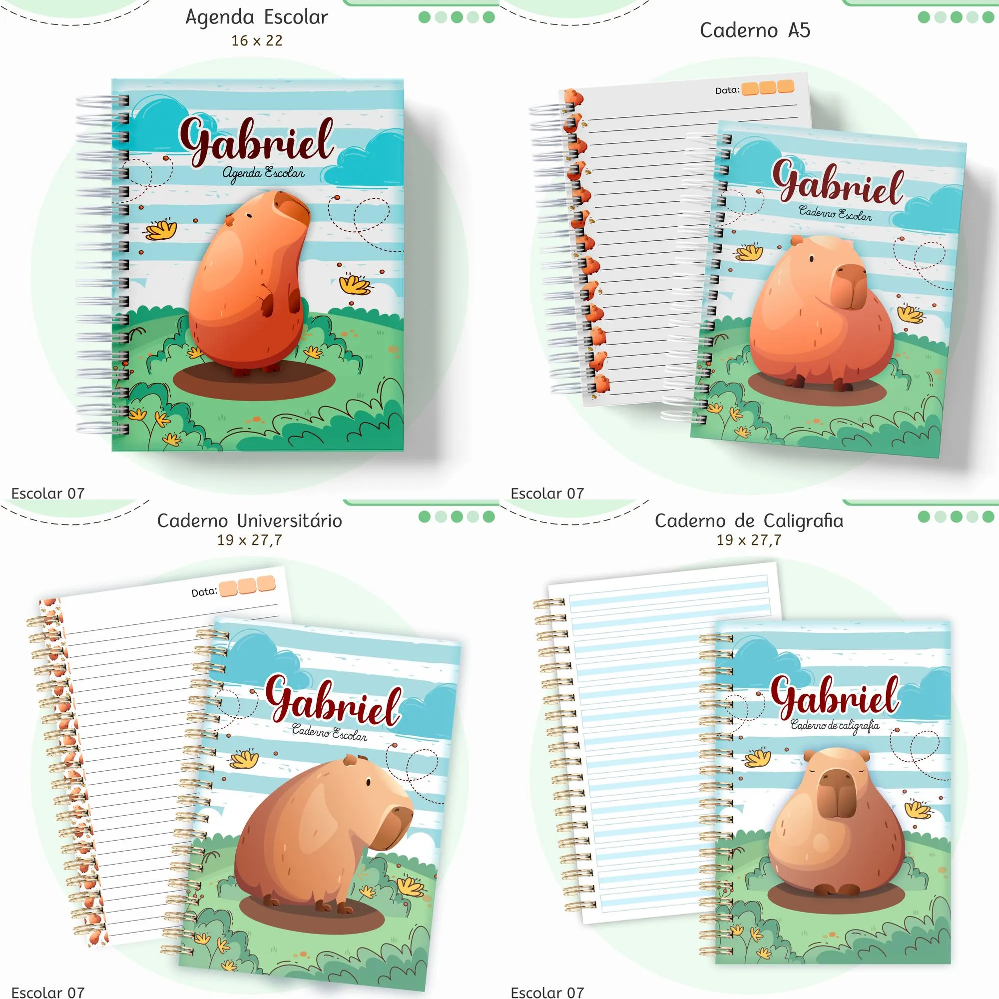 * Modelos para diferentes tamanhos de cadernos.