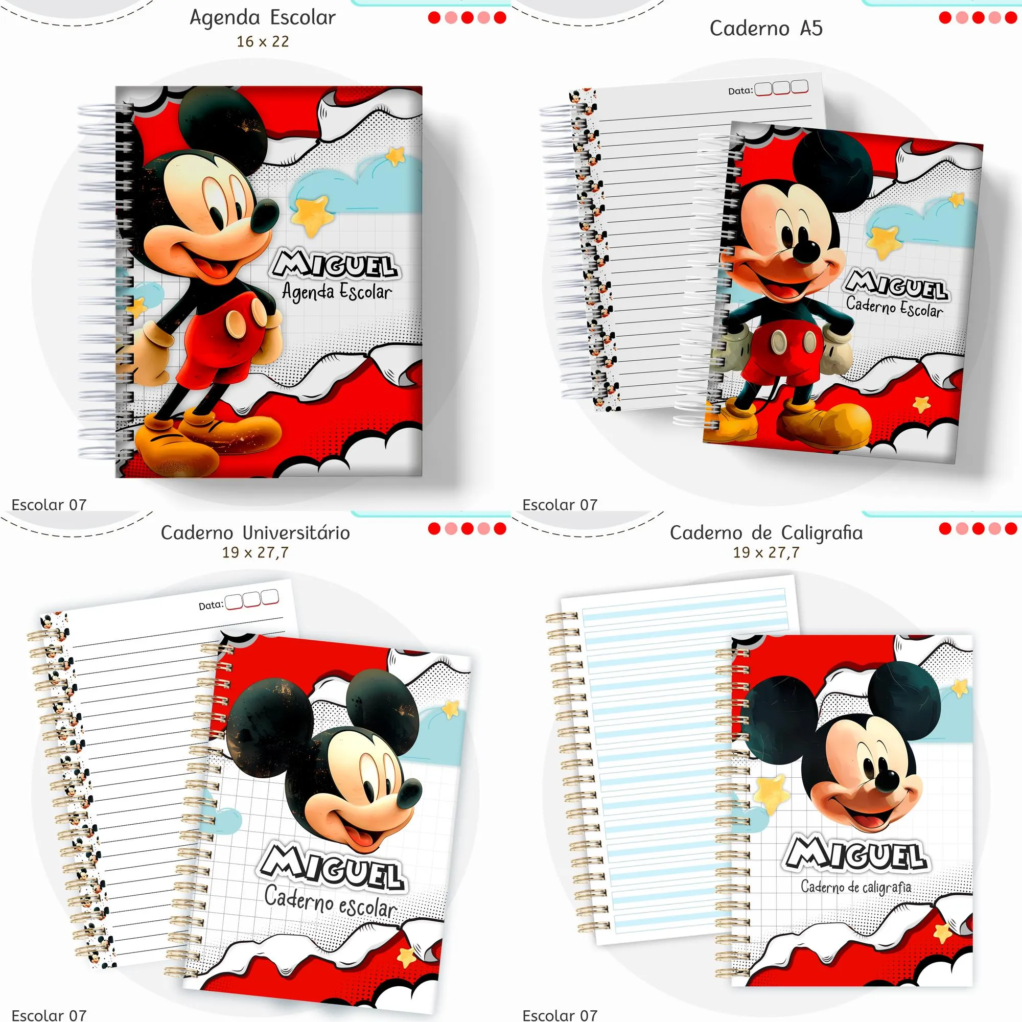* 📂 **Mockups:** 13 arquivos PNG (para Agenda, Caderno A5, Caderno Uni, Caderno Caligrafia, Desenho, Brochura, Etiquetas, Fichário, Bloquinho, Caneca, Squeeze, Toalhinha, e Grupo de Objetos).