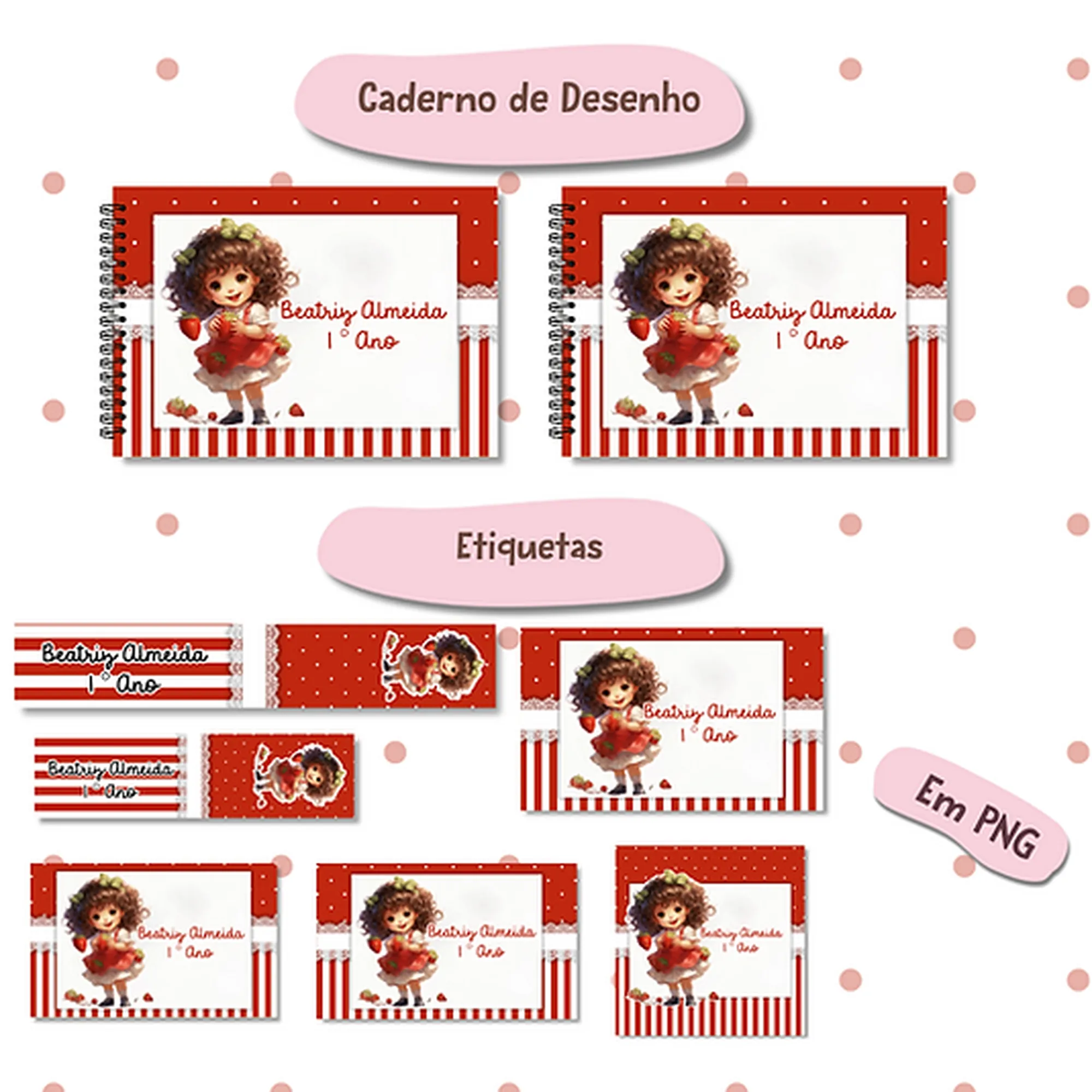 Prepare-se para um ano letivo cheio de doçura com este incrível Kit Escolar Digital da Moranguinho! 🍓📚 Perfeito para personalizar materiais e deixar tudo com a cara da sua pequena. Este pacote completo oferece uma variedade de arquivos prontos para impressão e uso digital.