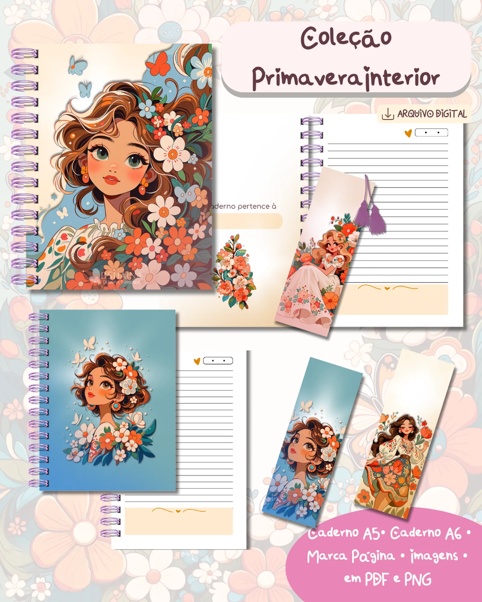 🌸✨ Prepare-se para criar cadernos encantadores com o PROJETO Arquivo Digital CADERNO PRIMAVERA 02! Este pacote completo oferece tudo o que você precisa para personalizar e produzir seus próprios cadernos com o tema da primavera.