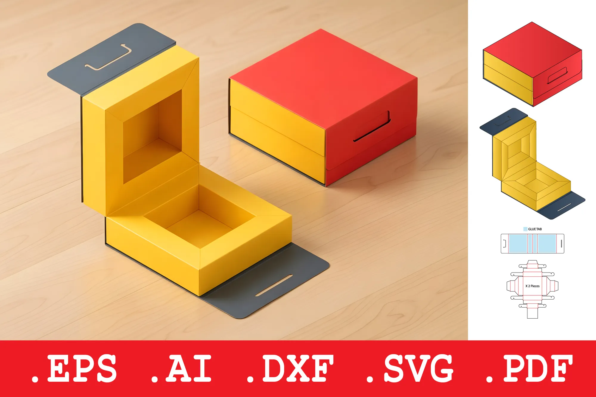 Este pacote digital oferece o projeto completo para a criação de uma caixa quadrada dobrável, equipada com dobradiça e fechadura, ideal para embalagens personalizadas, presentes ou projetos de artesanato.