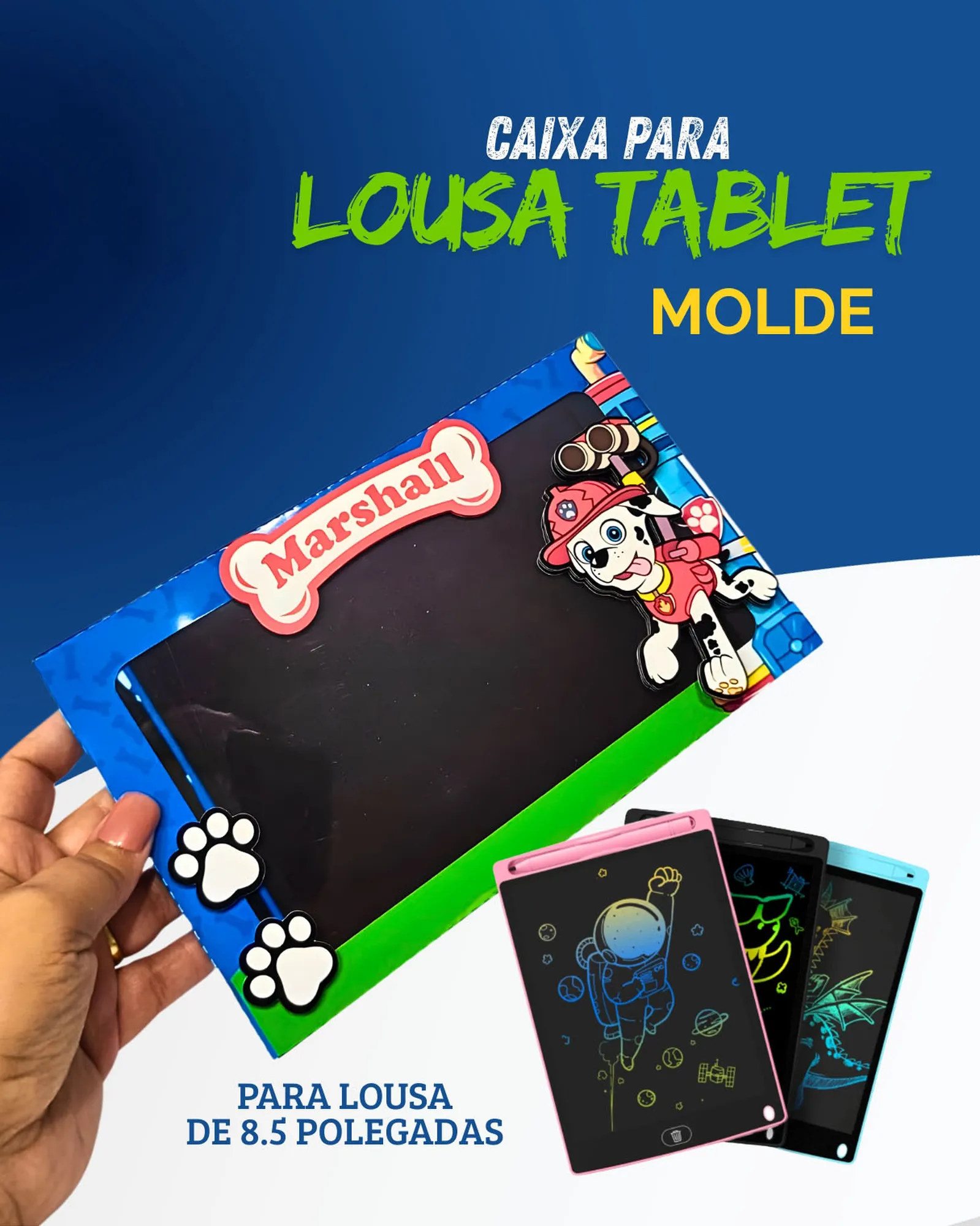 Este pacote digital completo foi cuidadosamente elaborado para você criar lindas caixas de tablet personalizadas com o tema Patrulha Canina! Ideal para festas, presentes ou para quem trabalha com personalizados.