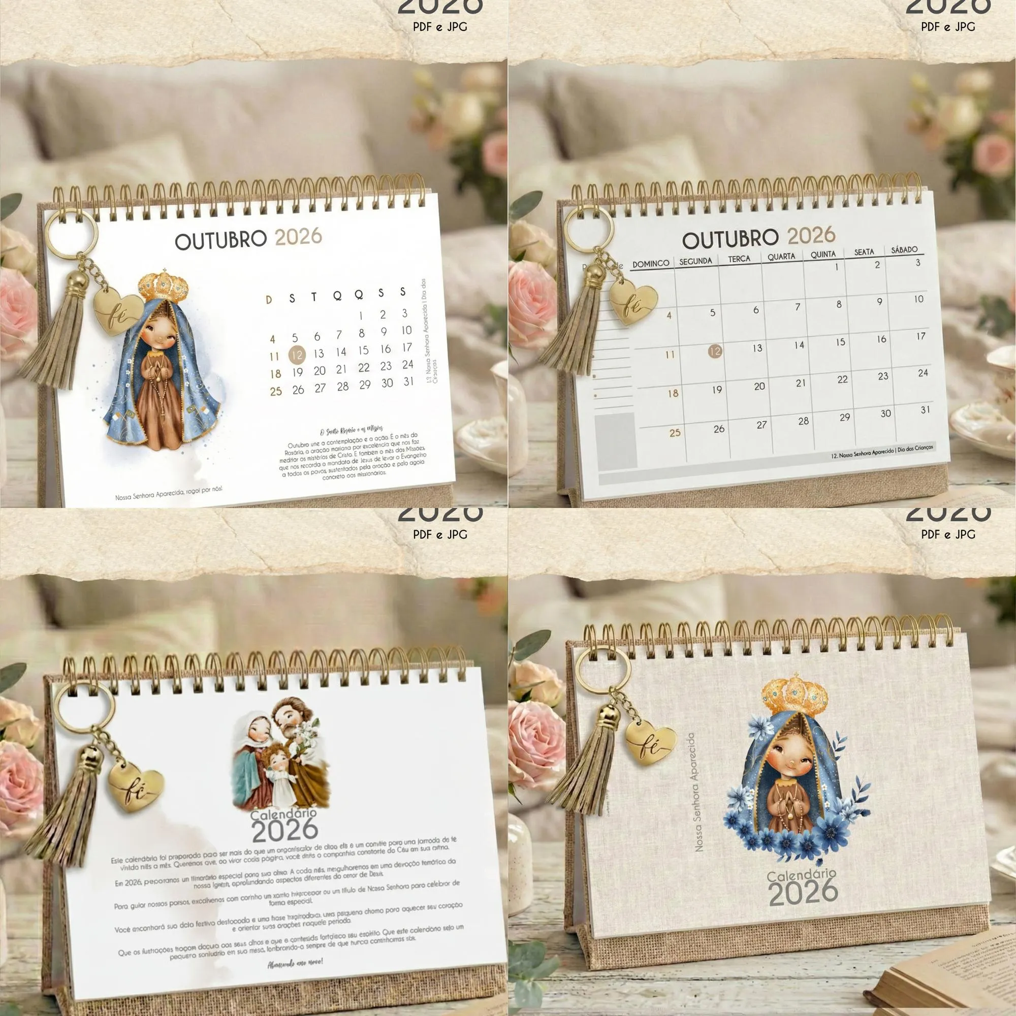**2. 🎁 Kit Extra com 12 Capas para Calendário de Mesa A5 Ano 2026 Santinhos**