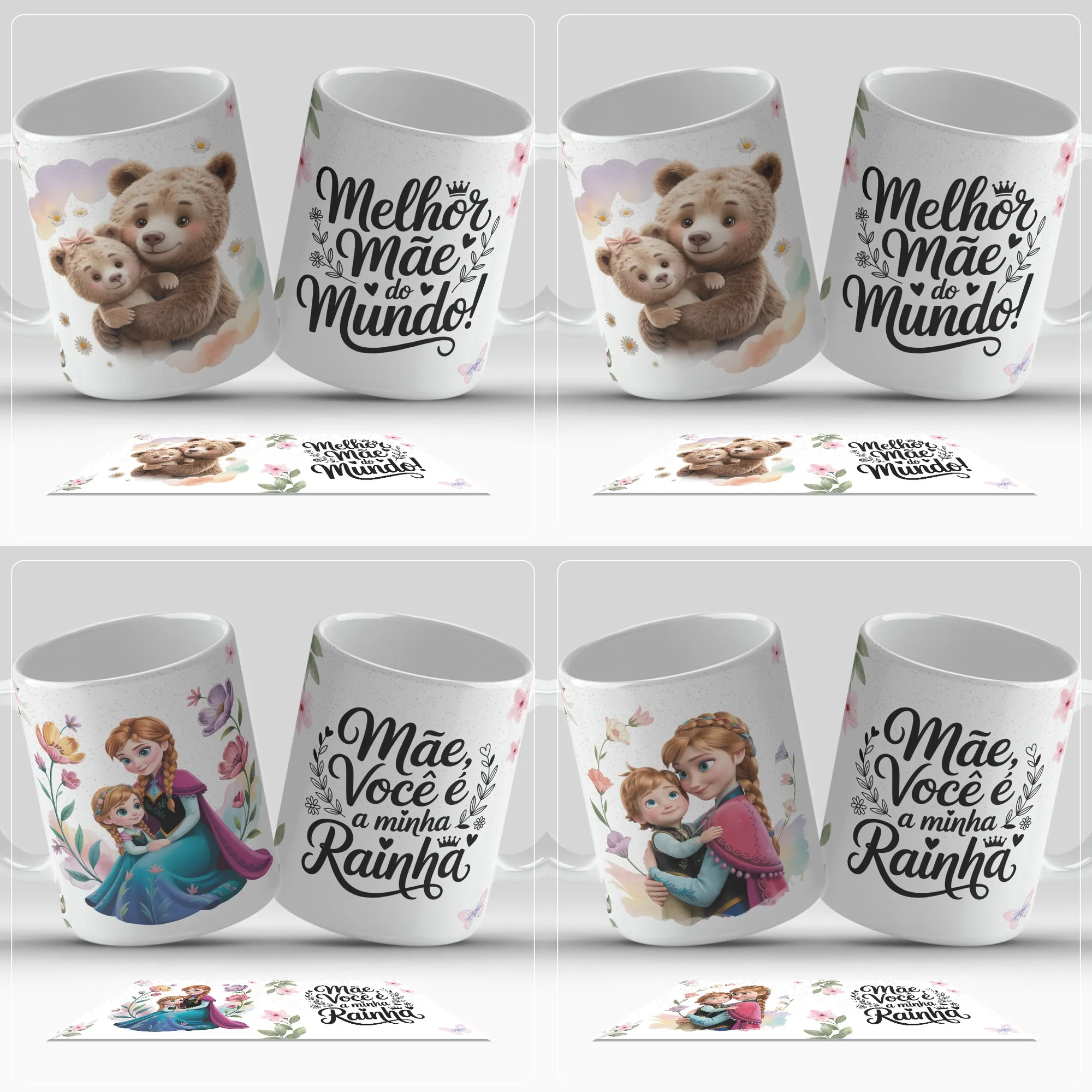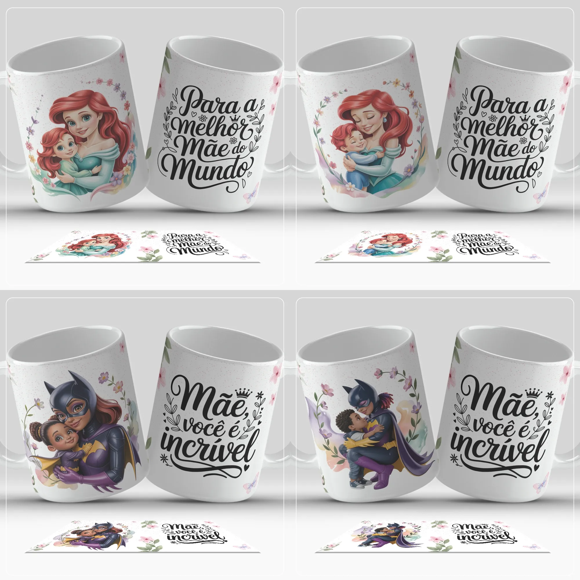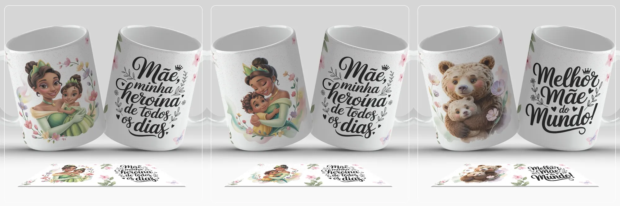 * 📂 **ARTES**: 26 arquivos JPG com artes exclusivas e prontas para canecas, celebrando o Dia das Mães com 13 temas encantadores (Ana, Ariel, Batgirl, Bela, Branca de Neve, Coruja, Leoa, Minnie, Mulher Maravilha, Rapunzel, Supergirl, Tiana, Ursa), cada um com versões para ‘Mãe e Filha’ e ‘Mãe e Filho’.