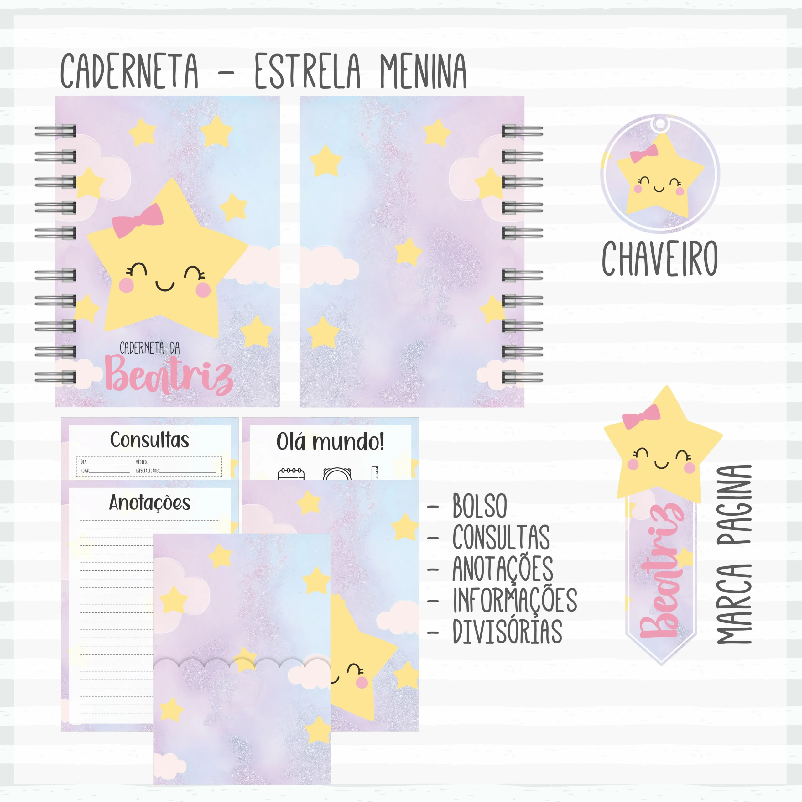 Arquivo Digital KIT Caderneta de vacina ESTRELINHA MENINA 1