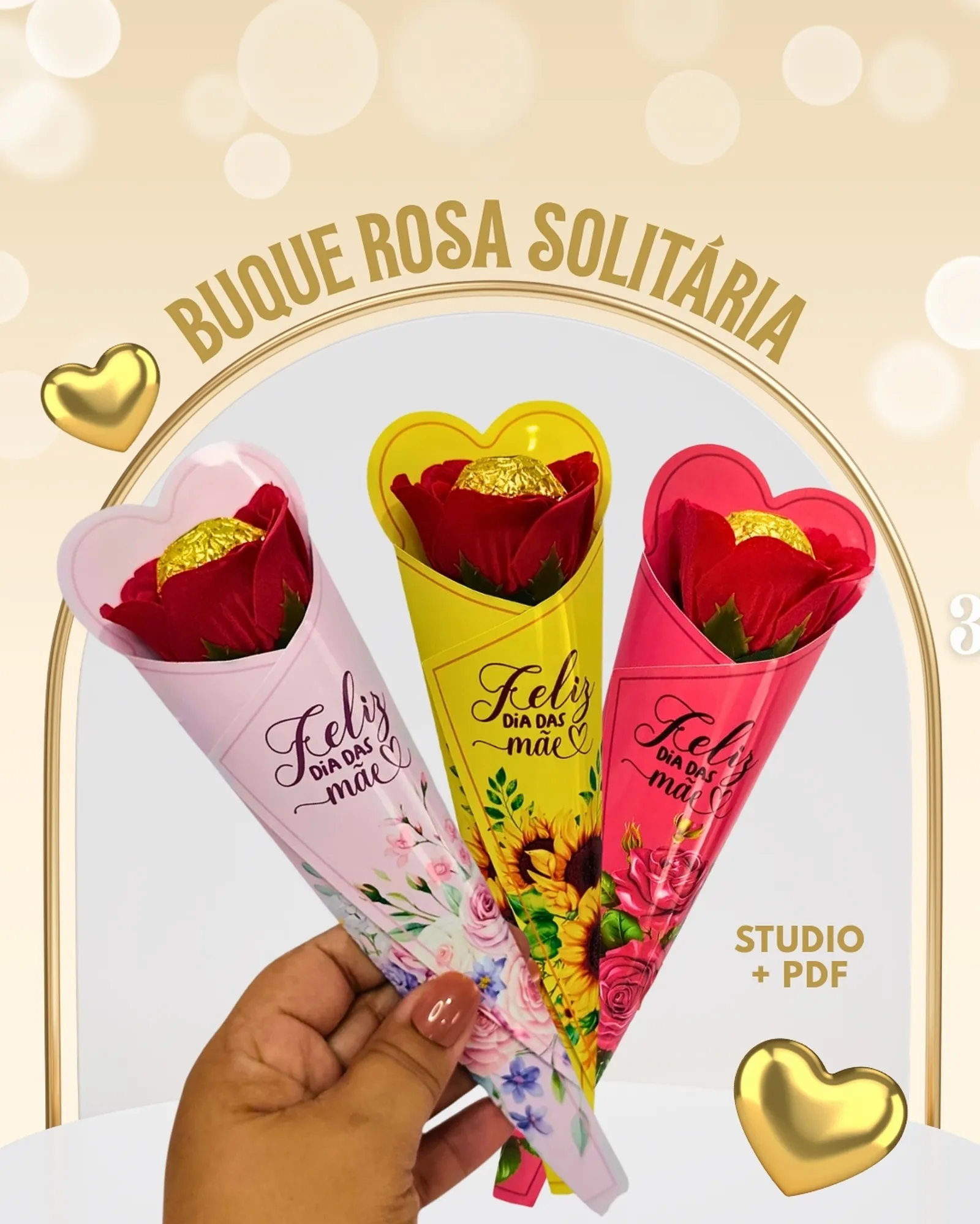 🎁 Este pacote digital completo é ideal para criar um lindo Buquê Pequeno para o Dia das Mães! Inclui arquivos prontos para corte e montagem, além de mockups para divulgação.