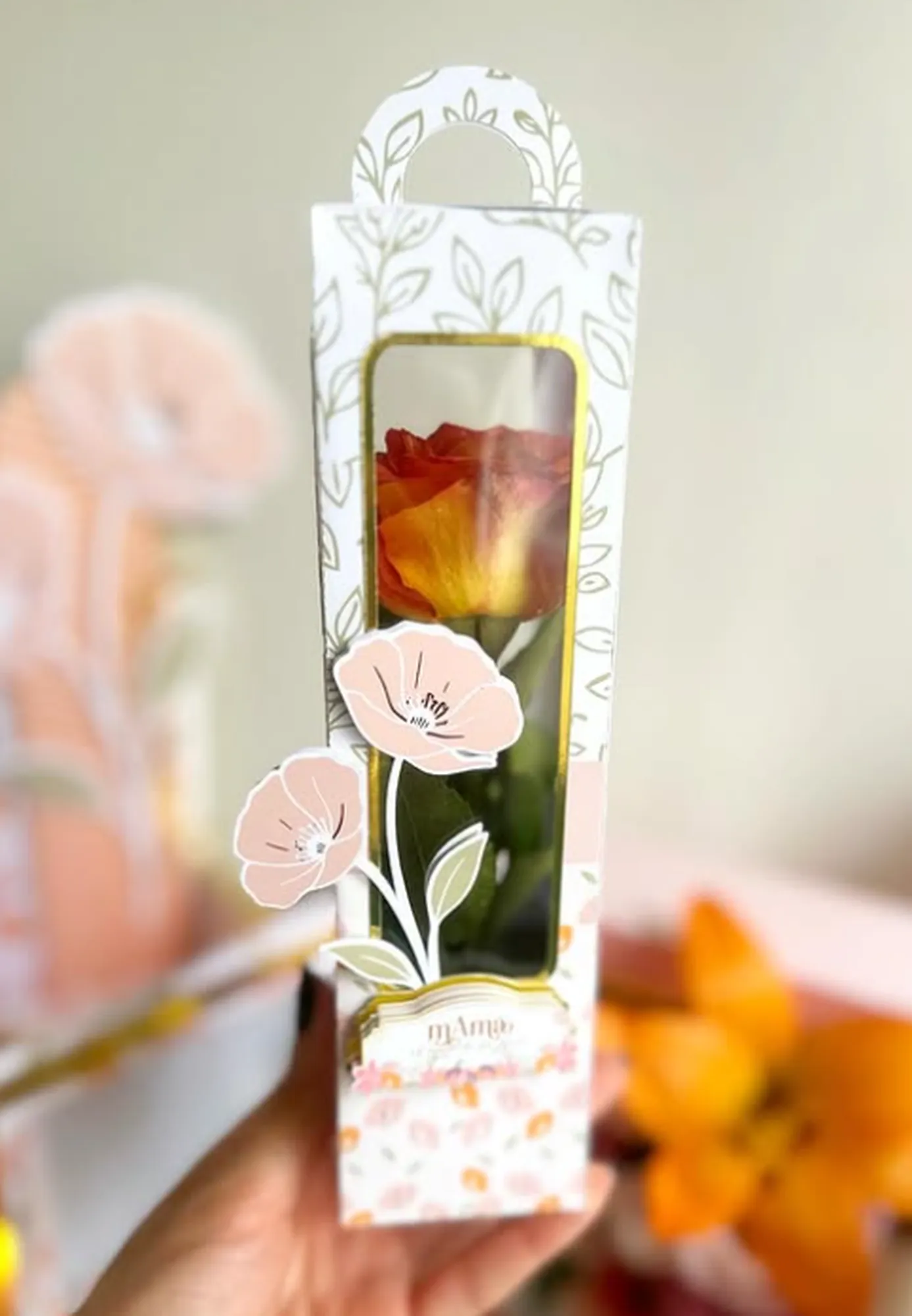 * 4 arquivos (PNG) com elementos de design essenciais, incluindo base com design, base x4, flor e tag, para compor e decorar sua caixa.