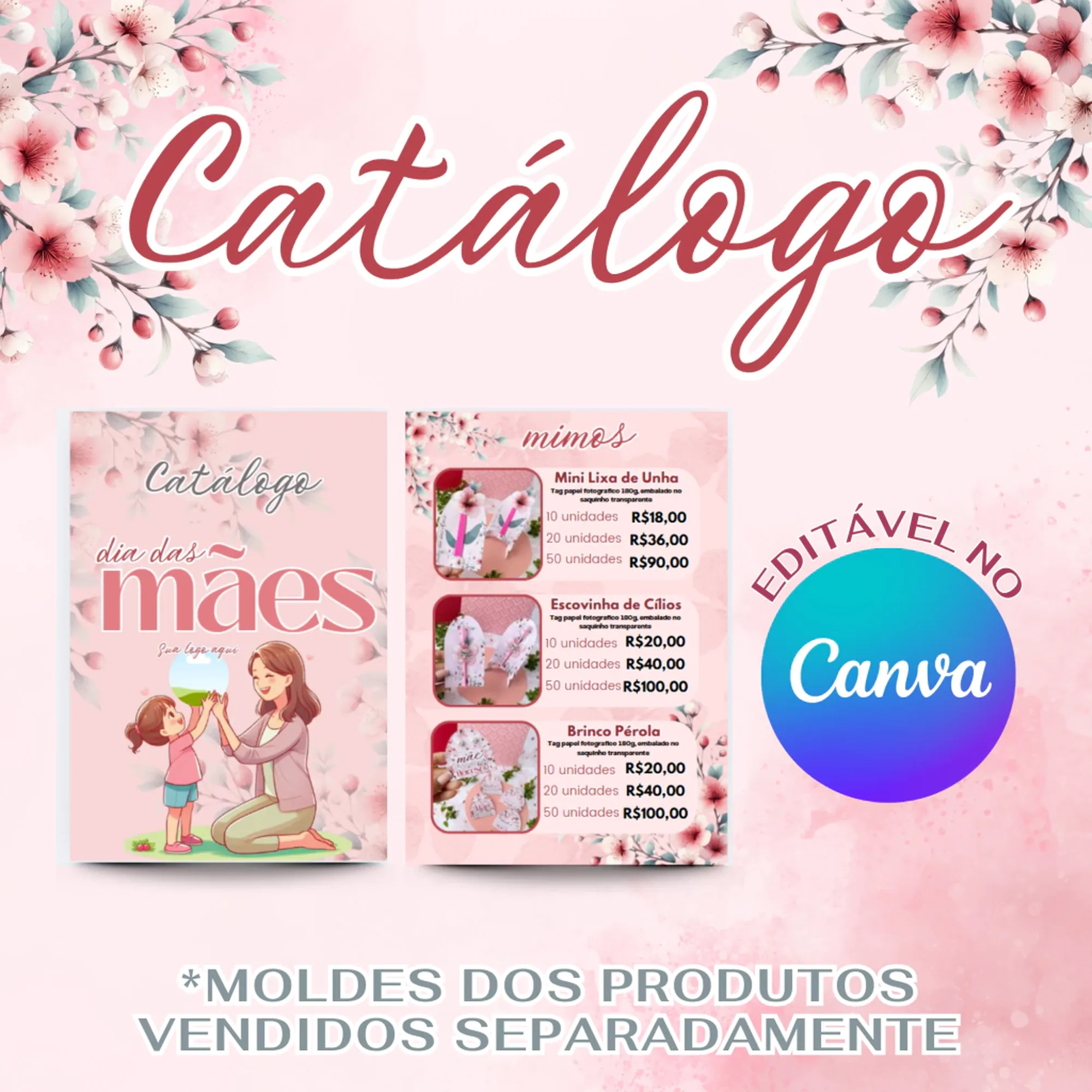 * Um Catálogo completo do Dia das Mães em formato PDF, pronto para ser editado no Canva! 🎨