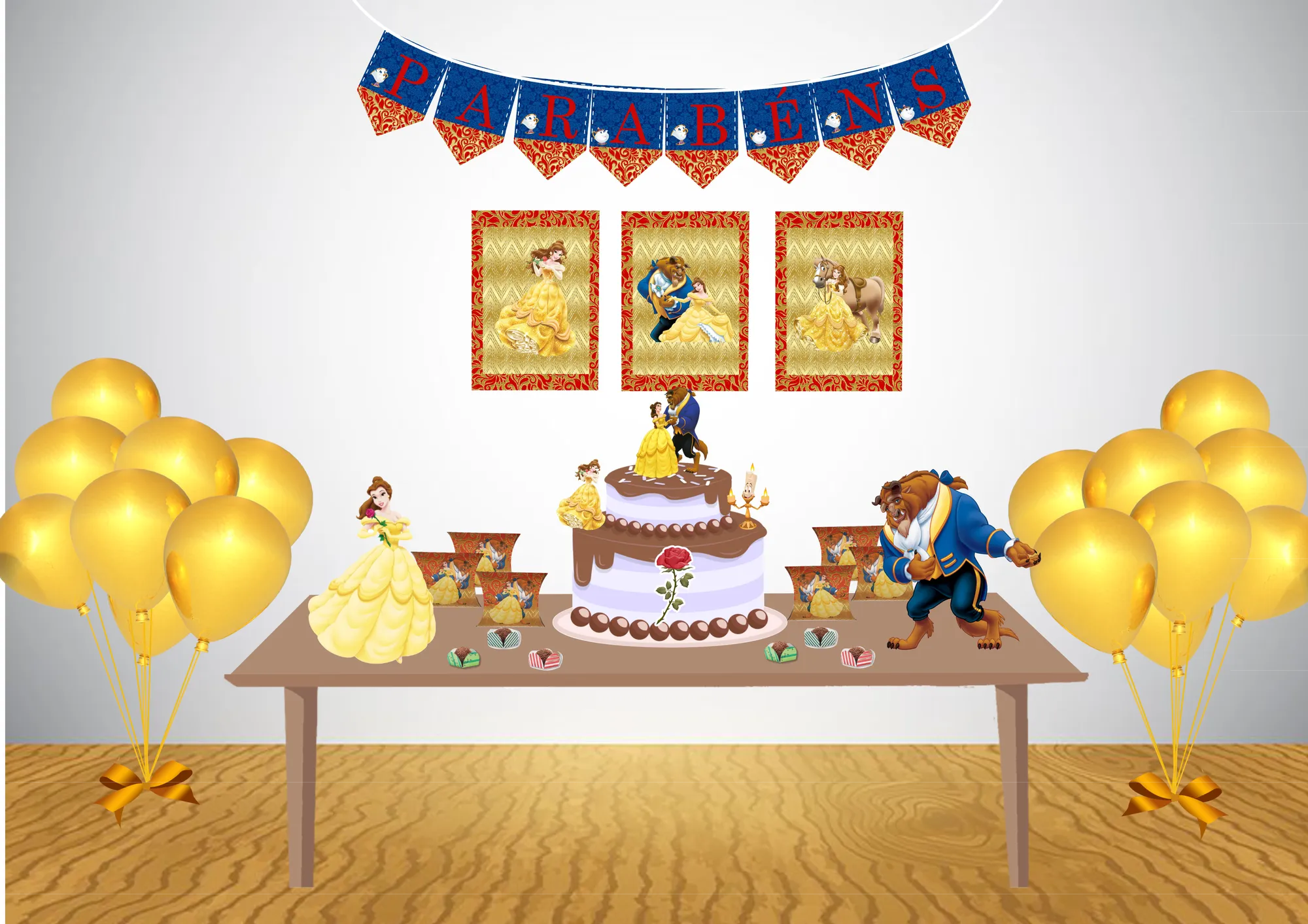 Este pacote digital exclusivo do tema “A Bela e a Fera” inclui: