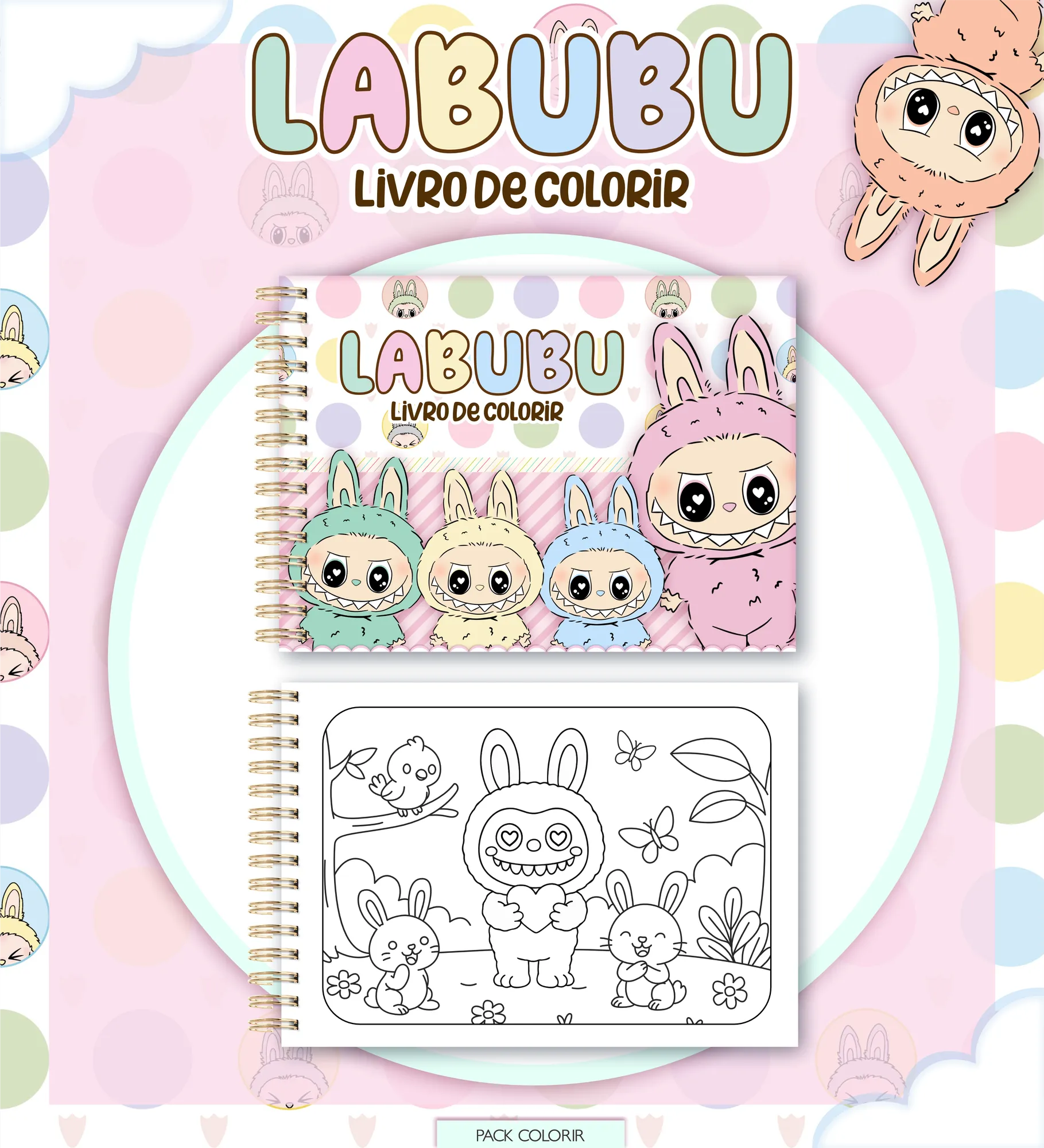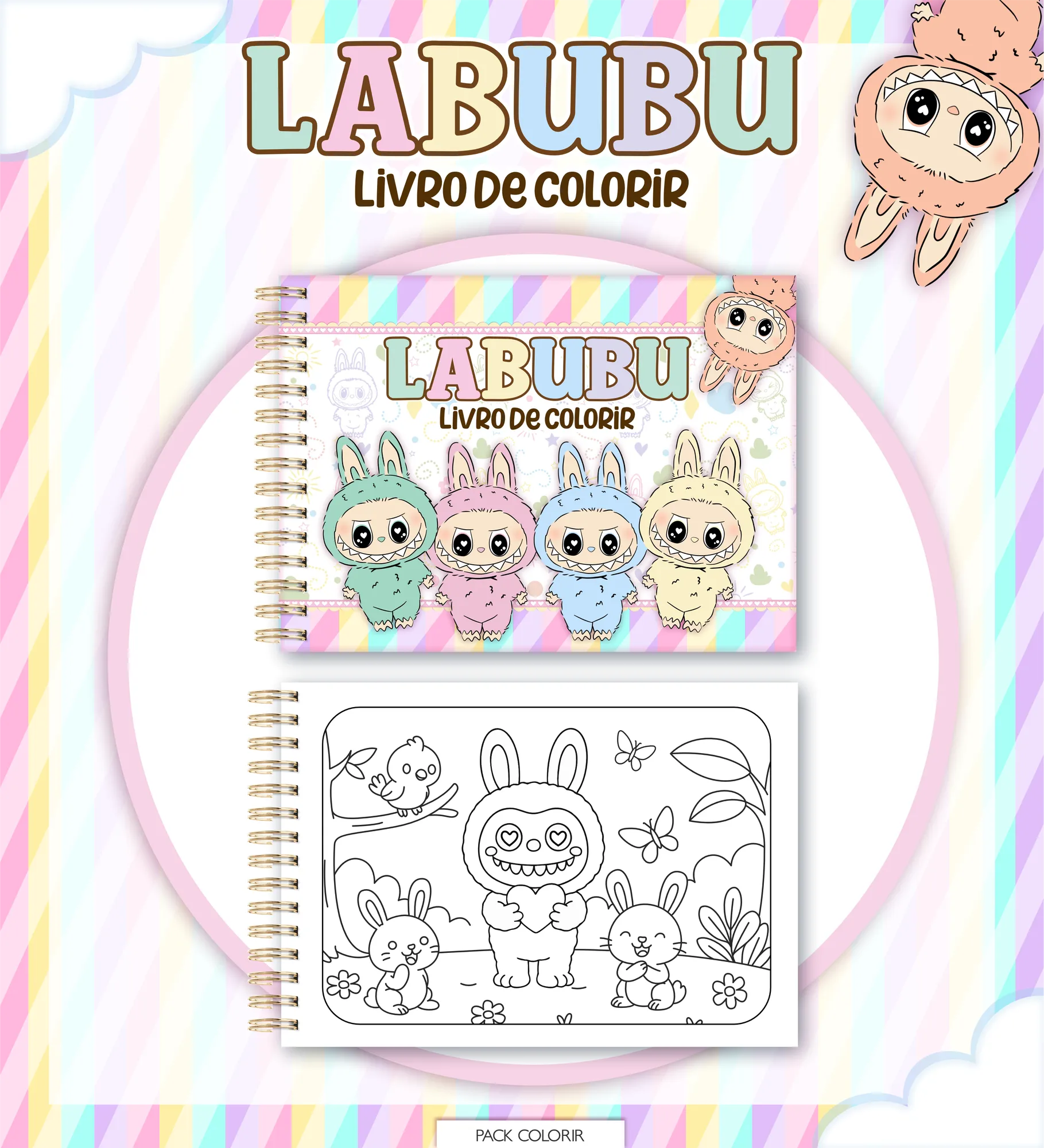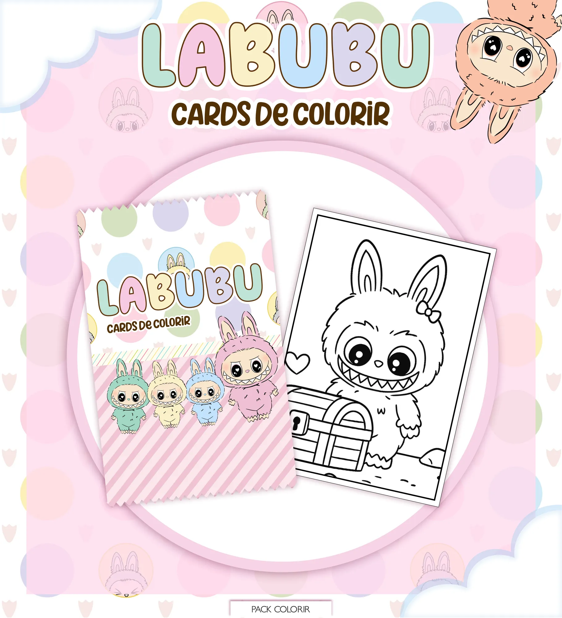 Este pacote digital completo oferece tudo o que você precisa para criar seu próprio Livro de Colorir Labubu, Estojo e Cards, perfeito para personalização e venda!