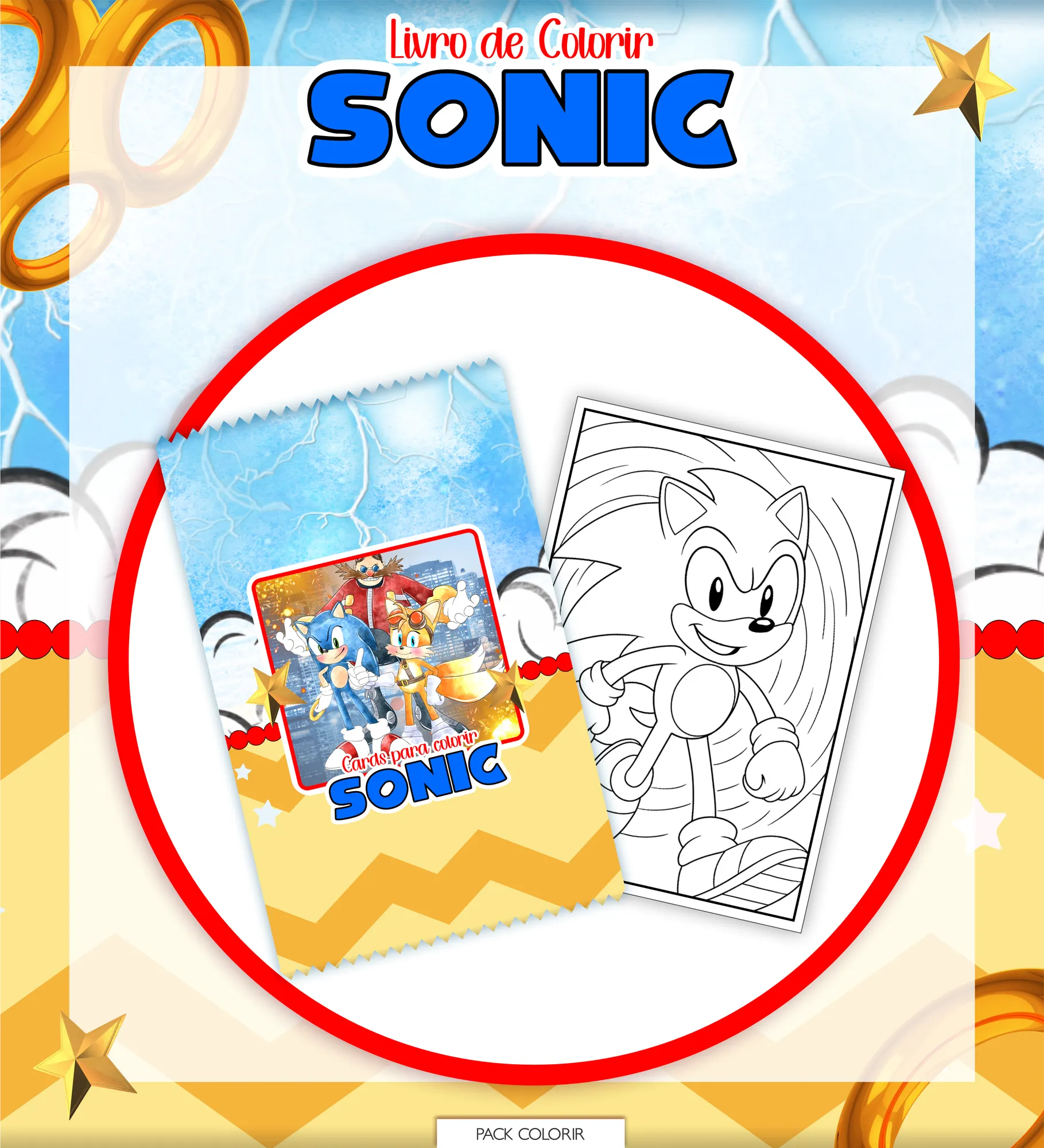 Este pacote digital completo é perfeito para criar seu próprio livro de colorir temático do Sonic! Ideal para festas, presentes ou atividades criativas, com todos os arquivos necessários para produção.
