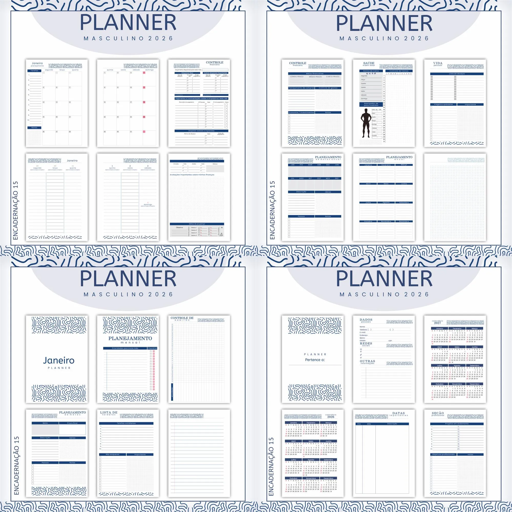 Este pacote oferece tudo o que você precisa para criar um planner masculino completo e de alta qualidade para 2026! 🚀