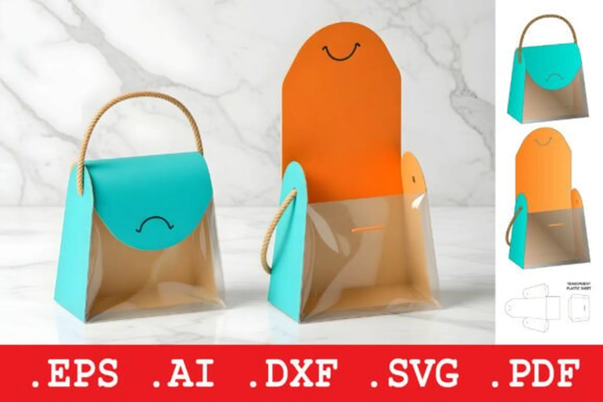 * **Design Principal da Sacola:** O projeto base da sacola com janela de acetato, oferecido em uma variedade de formatos para garantir máxima compatibilidade com seus softwares e máquinas de corte.