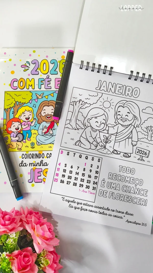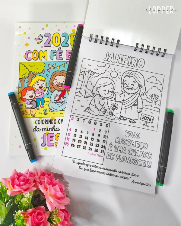 Arquivo Digital CALENDÁRIOS COLORIR – COM FÉ E COR 01 – 2026